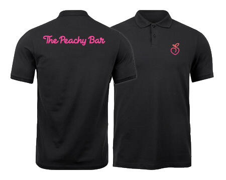 Peachy bar Polo shirts, made to order.